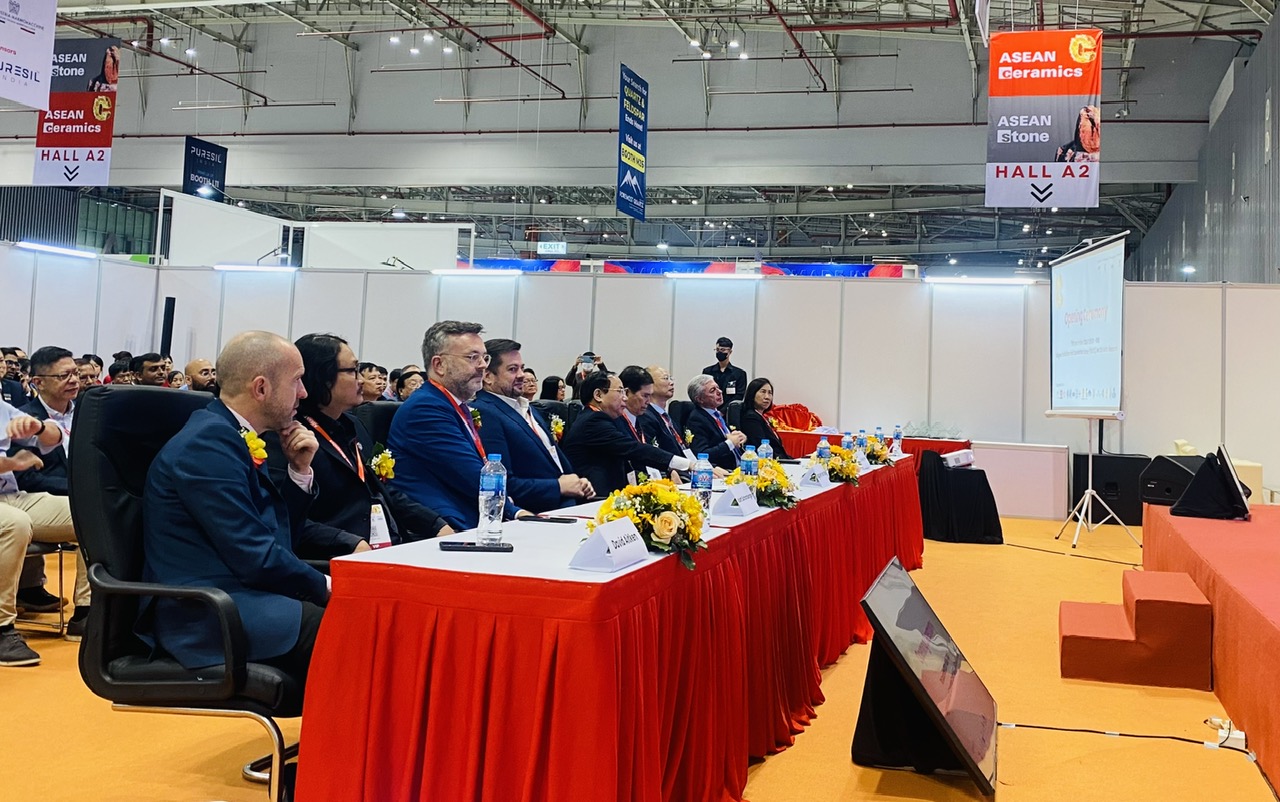 Phát biểu khai mạc Triển lãm Asean Ceramic & Stone 2024, Thứ trưởng Bộ Xây dựng Nguyễn Văn Sinh nhấn mạnh đây là hoạt động thiết thực hỗ trợ các chủ trương, chính sách của Nhà nước, góp phần thúc đẩy xúc tiến thương mại, chuyển giao công nghệ và hợp tác đầu tư.