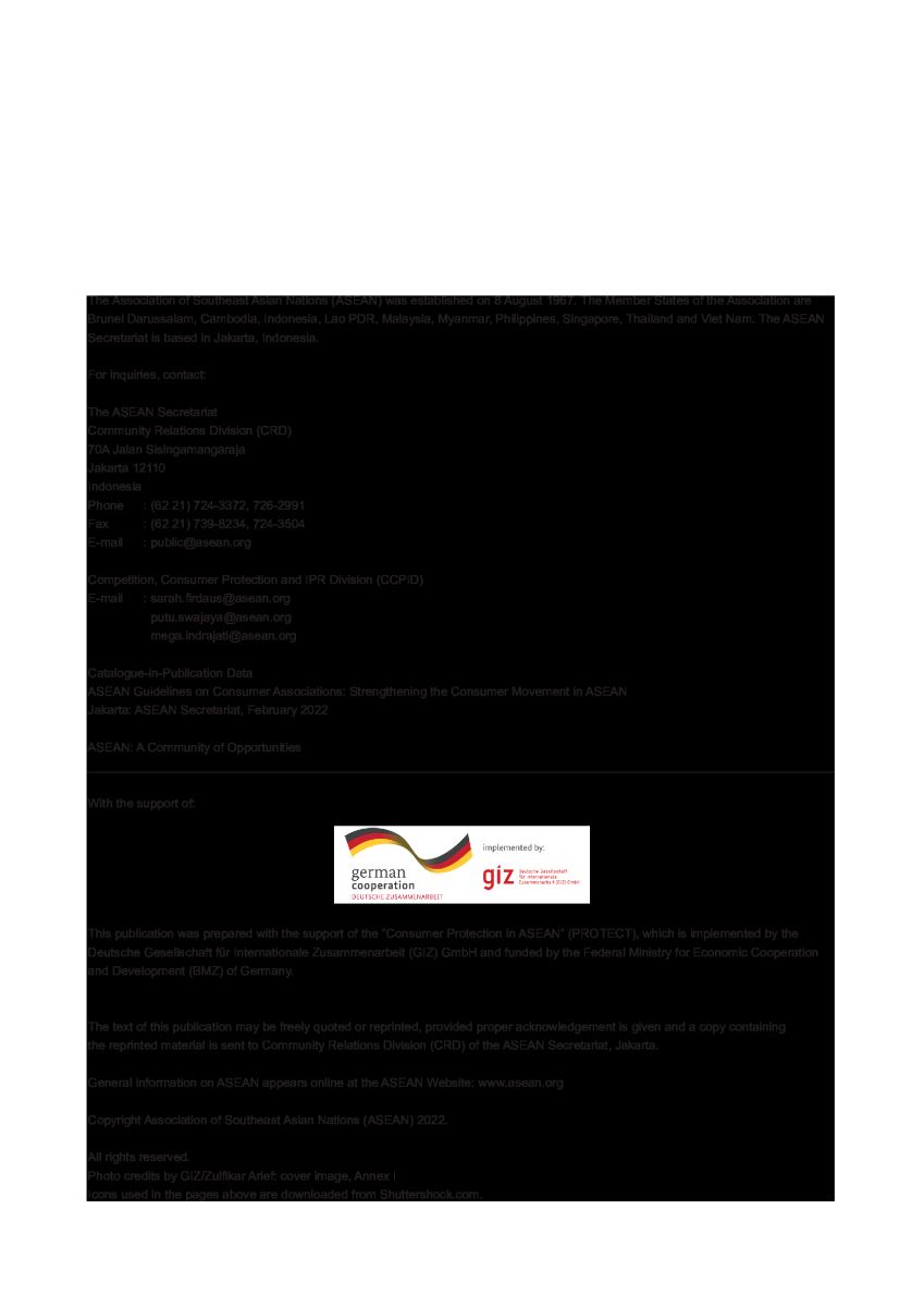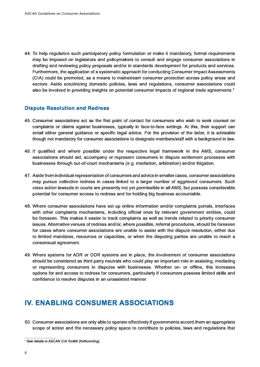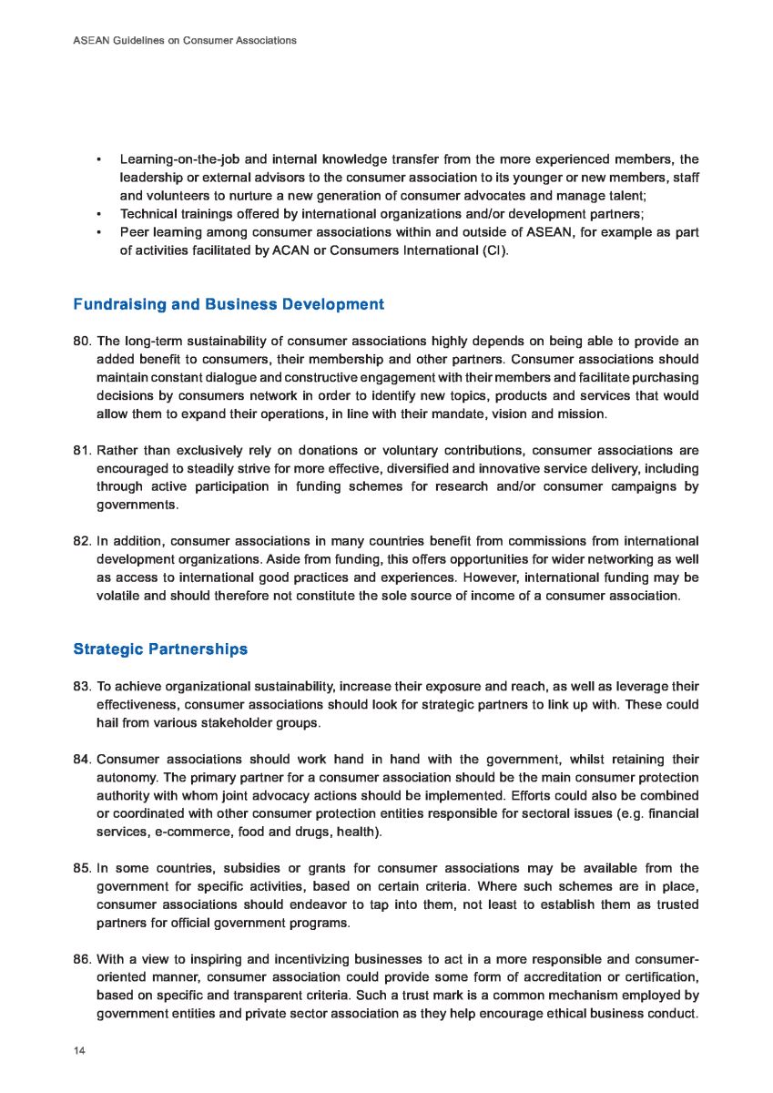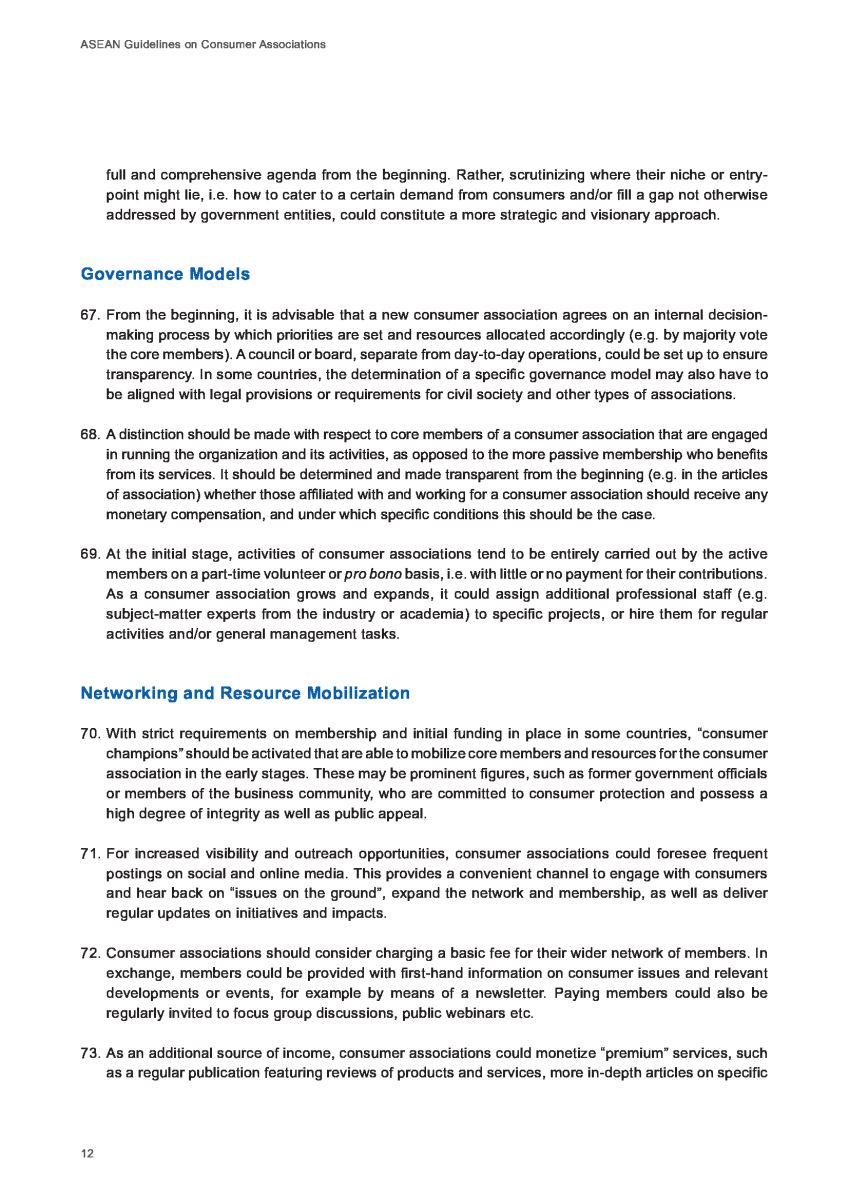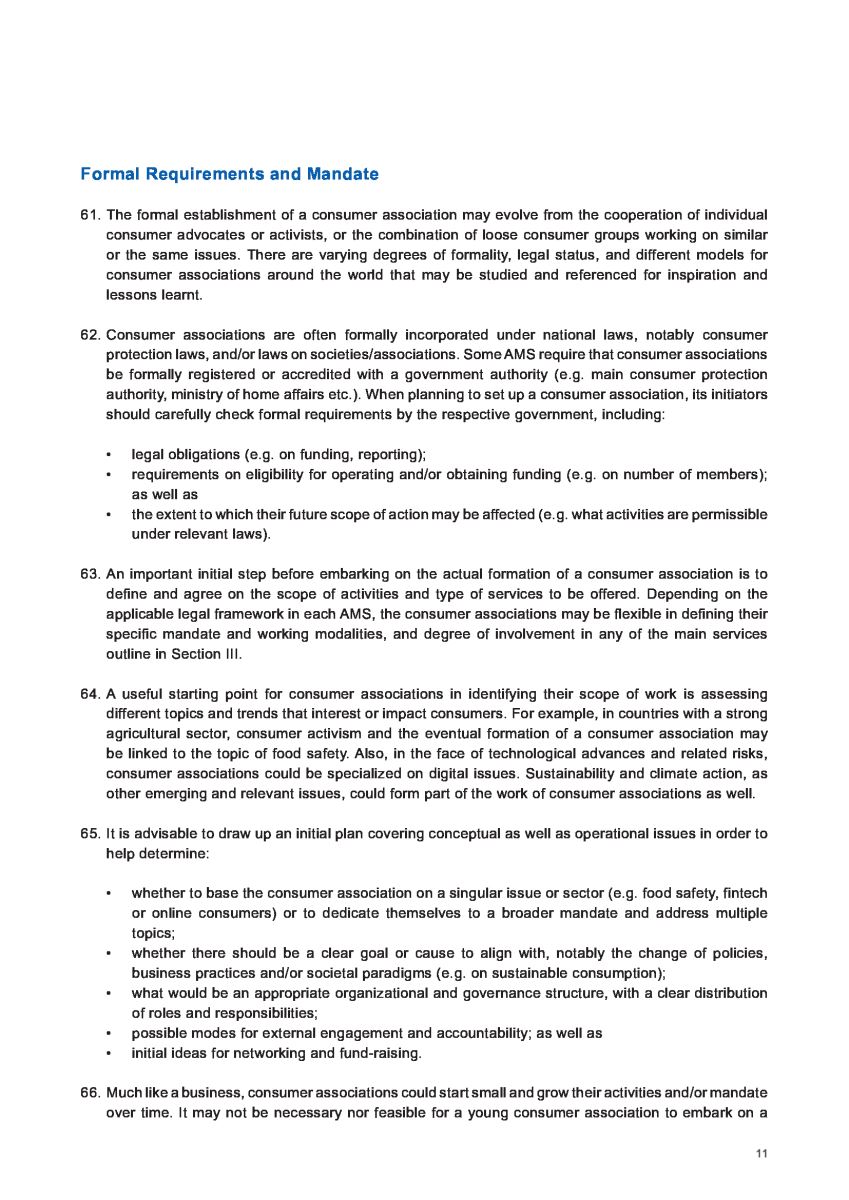 Theo Hướng dẫn của Liên hợp quốc về Bảo vệ người tiêu dùng, các Chính phủ ở ASEAN được khuyến khích, thúc đẩy tạo môi trường thuận lợi cho công việc của các tổ chức xã hội tham gia bảo vệ người tiêu dùng để các tổ chức này có thể hỗ trợ cho cộng đồng người tiêu dùng.