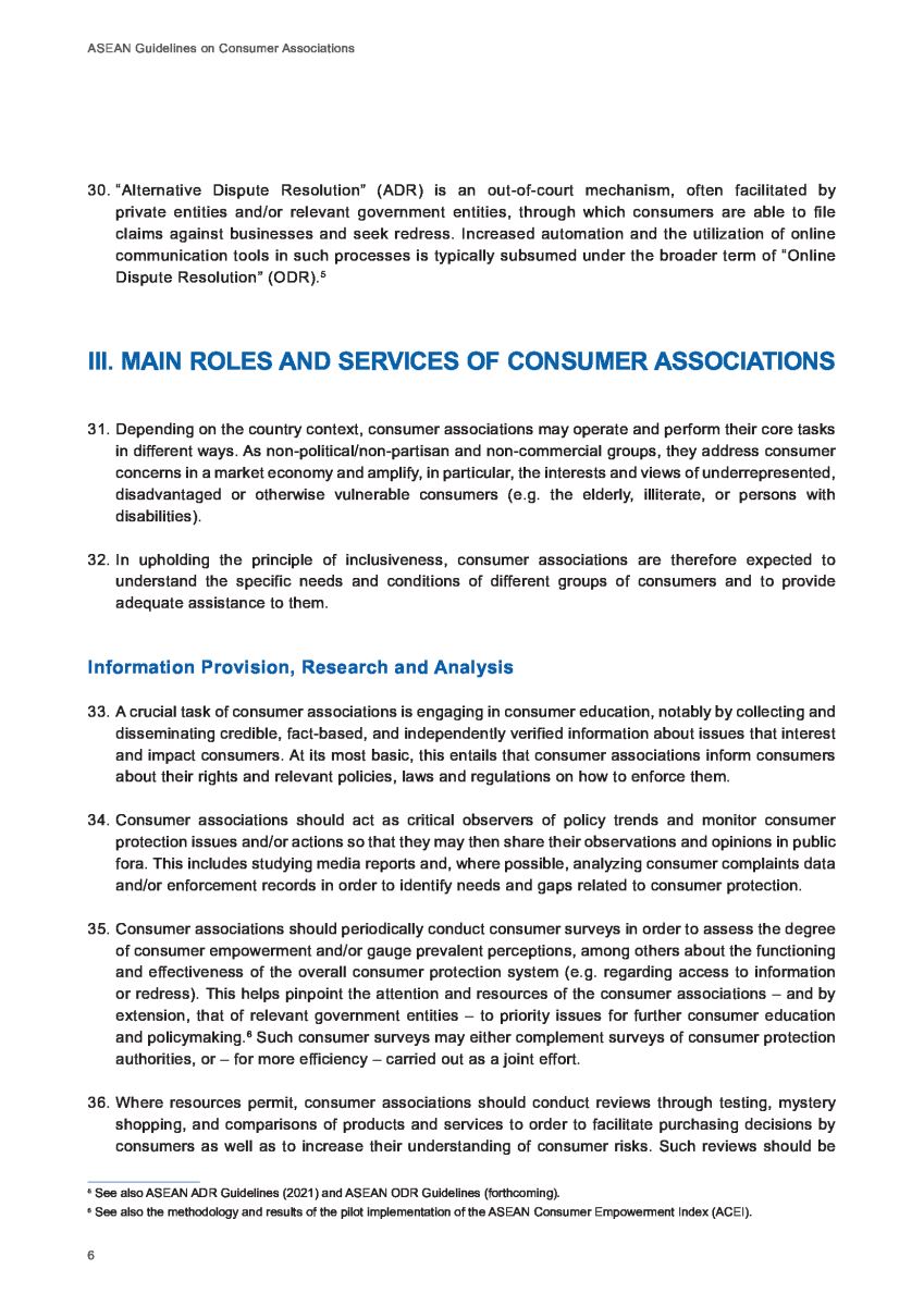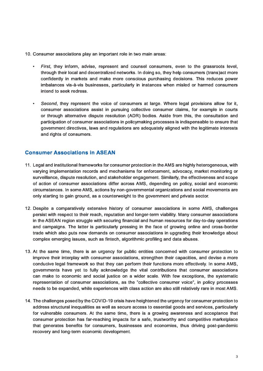 Hướng dẫn của ASEAN nêu rõ, các tổ chức bảo vệ người tiêu dùng đóng một vai trò quan trọng trong hai lĩnh vực chính: