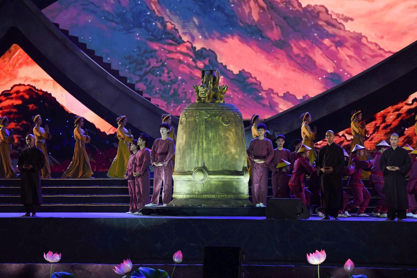 Sau phần nghi lễ, không khí trở nên sống động hơn với chương trình nghệ thuật “Tinh hoa di sản – Ngàn năm tỏa rạng”. Lấy hình tượng dòng chảy di sản làm trục xuyên suốt, chương trình dẫn dắt người xem đi qua nhiều lớp không gian văn hóa: từ chiều sâu tâm linh của Phật giáo Trúc Lâm, đến sắc màu dân gian của làng nghề và quan họ, rồi mở ra một Bắc Ninh hiện đại, đang chuyển mình nhưng vẫn giữ được cốt cách riêng.