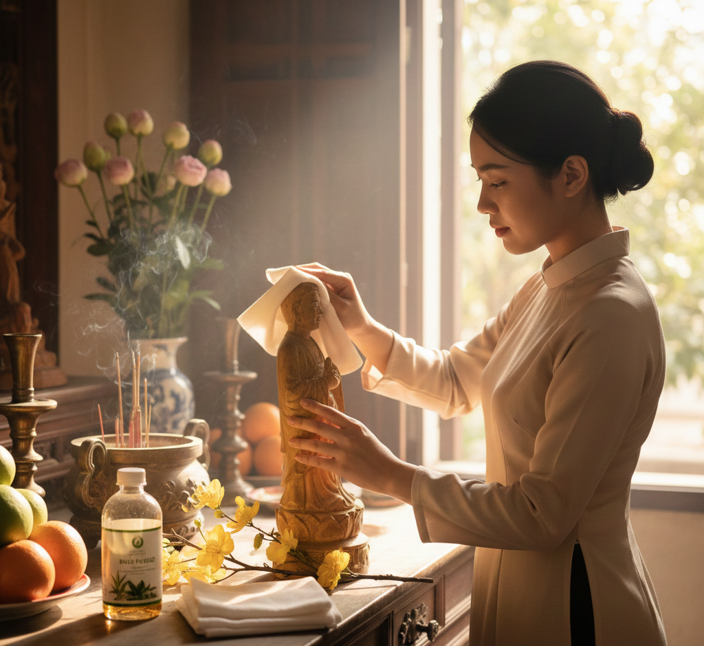 Bao sái ban thờ và rút tỉa chân nhang không chỉ là việc dọn dẹp vật lý, mà là một nghi thức "đối thoại" tâm linh tinh tế nhất của người Việt mỗi dịp cuối năm.
