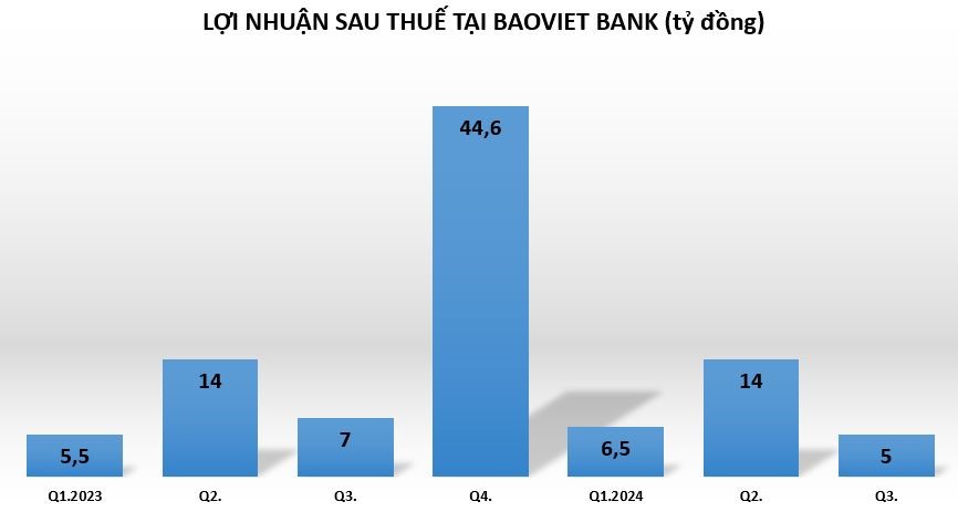 Lợi nhuận thuần 9 tháng qua của BaoViet Bank đạt gần 868 tỷ đồng, tăng tới 32%. Tuy nhiên, chi phí dự phòng rủi ro tín dụng lại chiếm tới hơn 835 tỷ đồng, tăng 34% so với cùng kỳ. Do đó, BaoViet Bank chỉ lãi sau thuế vỏn vẹn 25,8 tỷ đồng, giảm nhẹ 4%.
