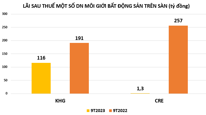 Trong bối cảnh khó khăn chung của thị trường bất động sản, các doanh nghiệp môi giới bất động sản trên sàn chứng khoán không có một đơn vị nào báo lãi tăng. Doanh thu từ hoạt động cốt lõi đều sụt giảm mạnh so với cùng kỳ năm trước.