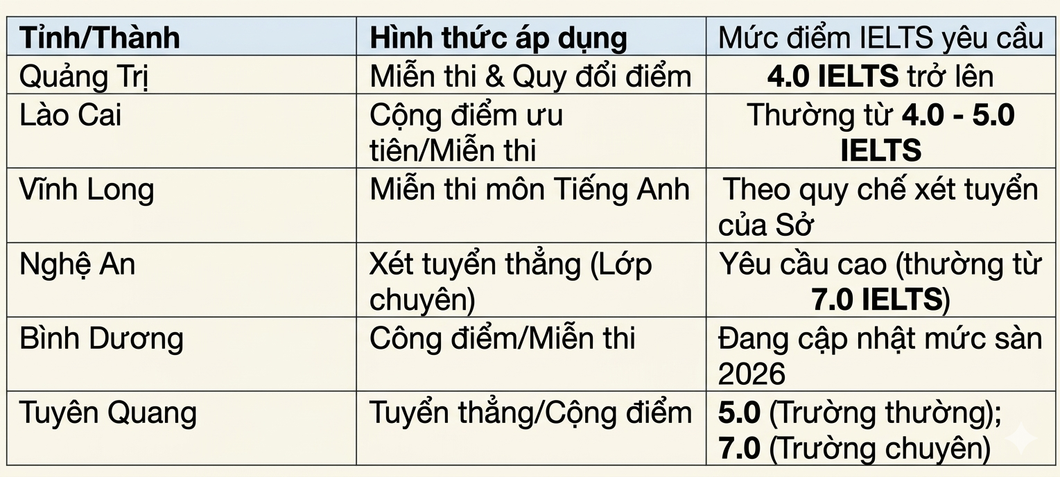 Danh sách các địa phương có cơ chế ưu tiên IELTS