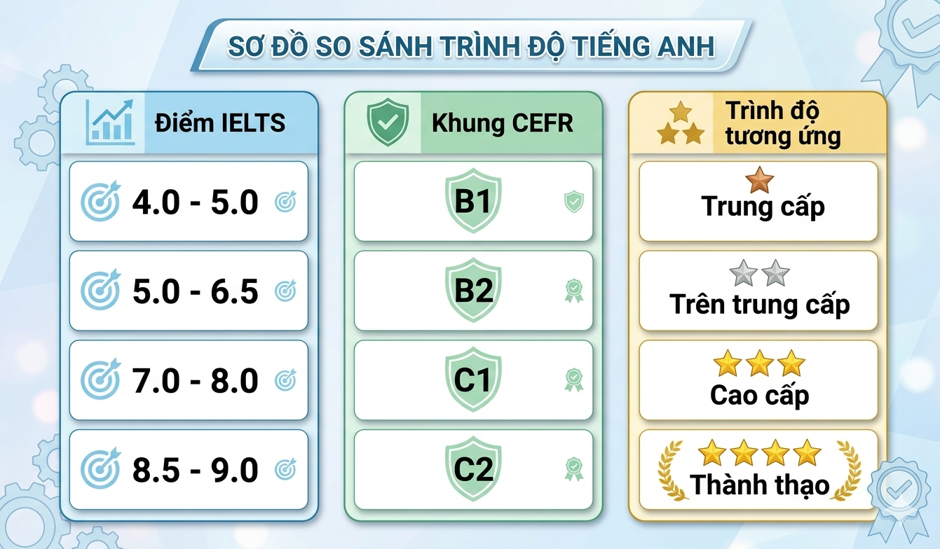 Đầu năm 2026, ETS (đơn vị tổ chức TOEFL) và IELTS đã công bố quy đổi mới nhất dựa trên nghiên cứu thực tế trên toàn thế giới. Bảng quy đổi này cho thấy sự điều chính đáng kể, đặc biệt ở mức điểm trung bình.