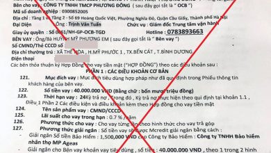 Trong đó, hồ sơ đều có các điều khoản của ngân hàng để đánh lạc hướng người vay, thông tin về người đứng tên đại diện ngân hàng đã bị sửa, sai lệch hoàn toàn với bản gốc từ ngân hàng.