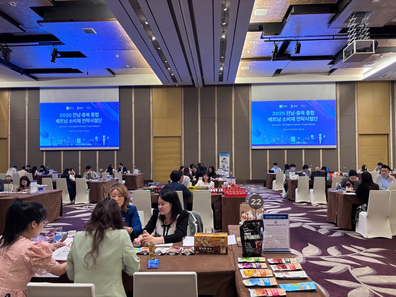 Ngày 13/3/2025, Cơ quan Xúc tiến Thương mại và Đầu tư Hàn Quốc (KOTRA Hà Nội) đã tổ chức thành công Sự kiện Giao thương trực tiếp (1:1) giữa hai đoàn doanh nghiệp đến từ tỉnh Jeonnam và tỉnh Chungbuk, Hàn Quốc, với các nhà nhập khẩu Việt Nam tại Khách sạn Lotte Hà Nội. Sự kiện này không chỉ tạo cơ hội cho các doanh nghiệp hai bên gặp gỡ, trao đổi, mà c&ograv