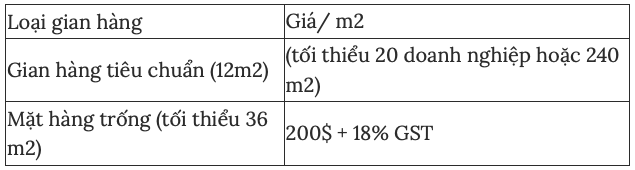 Lưu ý, doanh nghiệp đăng ký tham dự thanh toán trước 100% trước thời hạn quy định và thực hiện phụ thu 5% đối với các gian hàng góc.