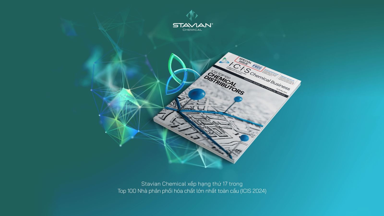 Independent Commodity Intelligence Services (ICIS) vừa công bố Bảng xếp hạng Top 100 Nhà phân phối Hoá chất uy tín toàn cầu. Công ty Cổ phần Stavian Hoá chất (Stavian Hoá chất) đã đạt được thành tích vượt trội khi vươn lên xếp hạng thứ 17 trong Top 100 Nhà phân phối hóa chất lớn nhất toàn cầu và đạt xếp hạng thứ 07 trong Top 100 Nhà phân phối hóa chất lớn nhất khu vực châu Á – Thái Bình Dương. Đây chính là minh chứng cho sự tăng trưởng và phát triển bền vững của Stavian Hoá chất dù đối mặt với những thách thức của thị trường toàn cầu.