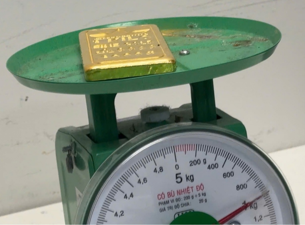 Tang vật miếng vàng 1 kg bị phát hiện bắt giữ.