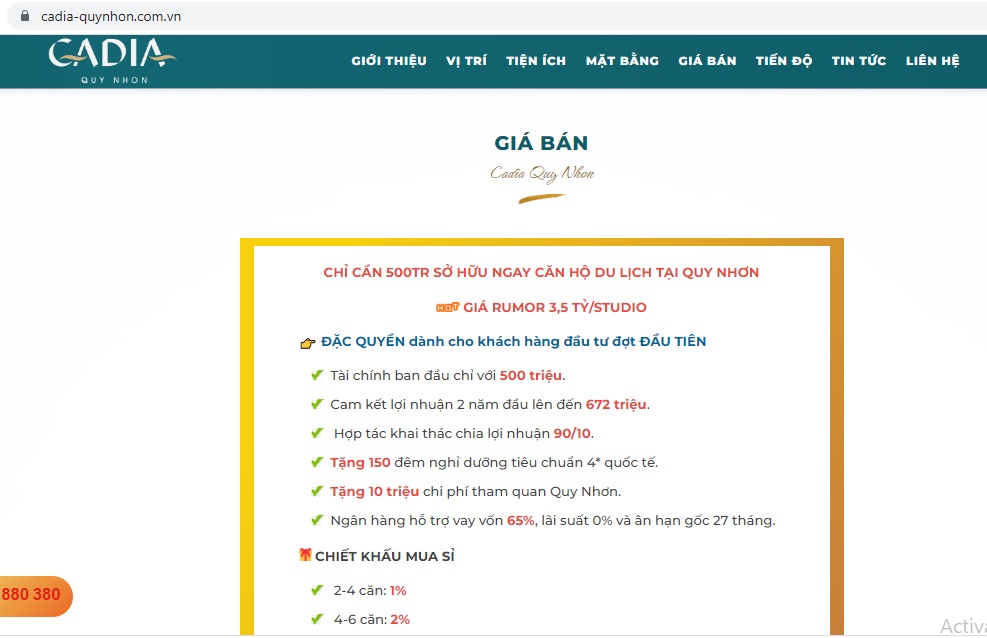 Sở Xây dựng tỉnh Bình Định cho biết, Dự án tại khu đất số 01 đường Ngô Mây, thành phố Quy Nhơn (tên thương mại là Cadia Quy Nhơn) chưa đảm bảo điều kiện của bất động sản được đưa vào kinh doanh theo quy định của pháp luật về kinh doanh bất động sản.