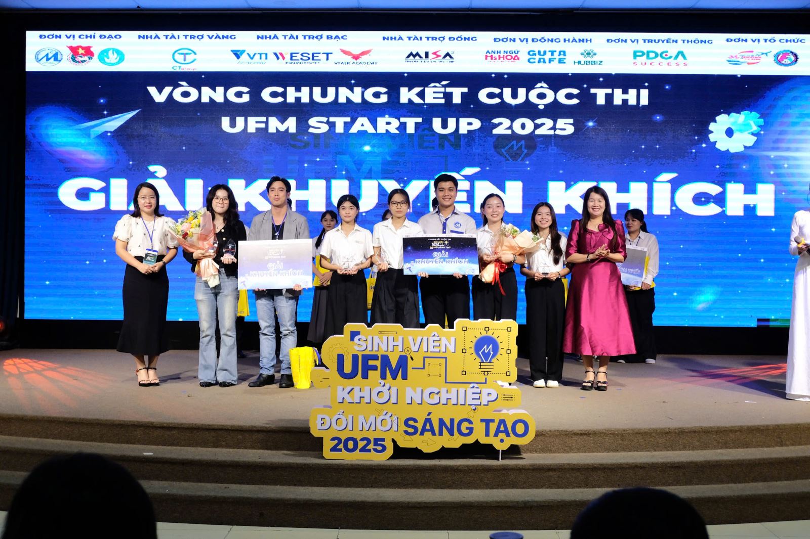 UFM Startup 2025 - đã thực sự ghi dấu ấn với sự tăng trưởng vượt bậc cả về số lượng lẫn chất lượng. Từ vòng loại đến vòng chung kết, các Đội thi cùng nhau trải qua các vòng huấn luyện chuyên sâu, các buổi cố vấn cá nhân từ chuyên gia hàng đầu, tổ chức các hoạt động Talkshow Startup - Innovation truyền cảm hứng, Minigame, hoạt động online sôi động, Workshop tập huấn kỹ năng thực chiến, nghi thức Ký kết MOU với các đối tác chiến lược, đến Lễ hội UFM Techfest quy tụ doanh nghiệp và cộng đồng khởi nghiệp. Từ 61 đội ở Vòng Sơ loại, Hội đồng Giám khảo sàng lọc kỹ lưỡng để chọn ra 20 đội bước vào Vòng Bán kết. Qua những phần thi giàu kịch tính, thể hiện rõ năng lực phân tích, phản biện và thực thi của từng đội, 11 cái tên xứng đáng đã ghi danh tại Vòng Chung kết.