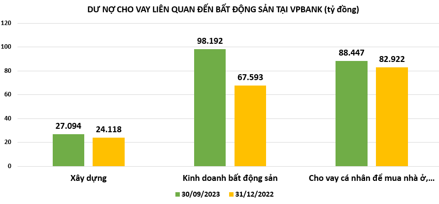 Như vậy, dư nợ cho vay liên quan đến lĩnh vực bất động sản tại VPBank tính đến cuối quý 3/2023 lên tới khoảng 213.700 tỷ đồng, tăng 22% so với đầu năm.
