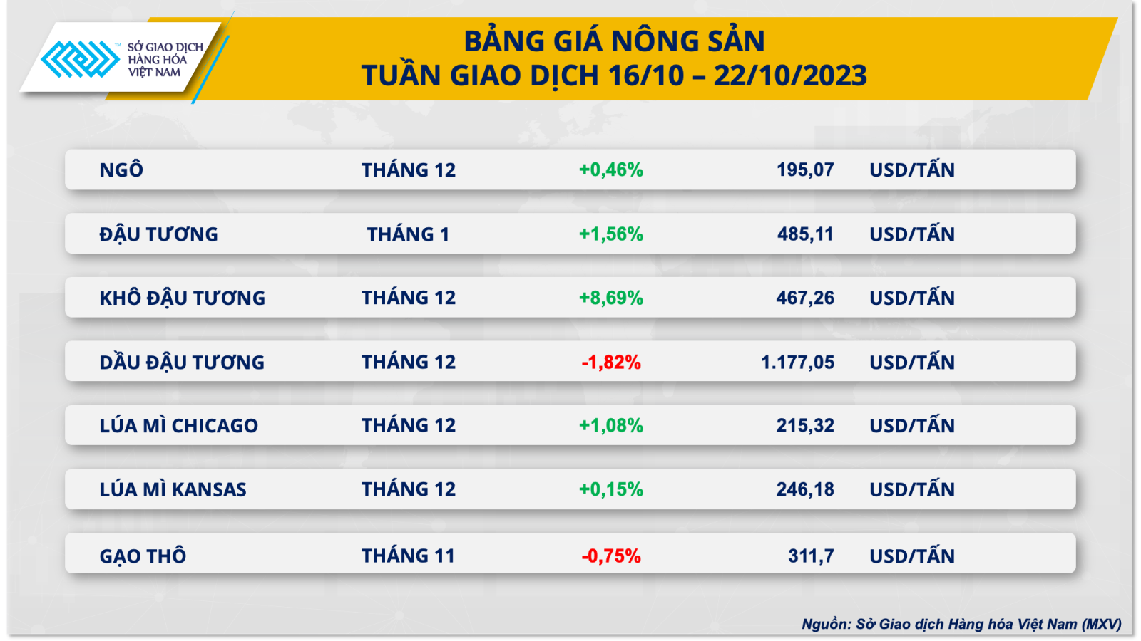 Số liệu từ Sở Giao dịch Hàng hóa Việt Nam (MXV) cho thấy, thị trường hàng hóa thế giới vẫn tương đối giằng co, nhưng lực mua đang có phần mạnh hơn.