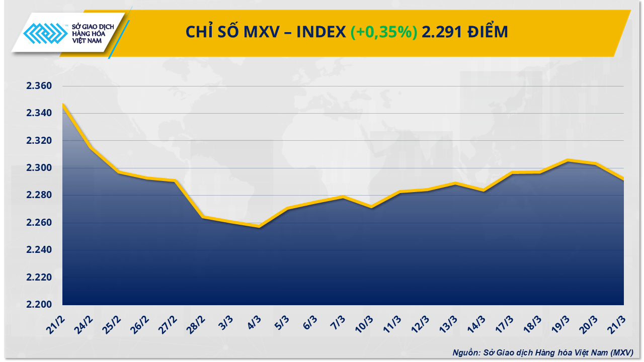 Theo Sở Giao dịch Hàng hóa Việt Nam (MXV), sắc xanh áp đảo trên thị trường hàng hóa nguyên liệu thế giới trong tuần giao dịch vừa qua (17-23/3).