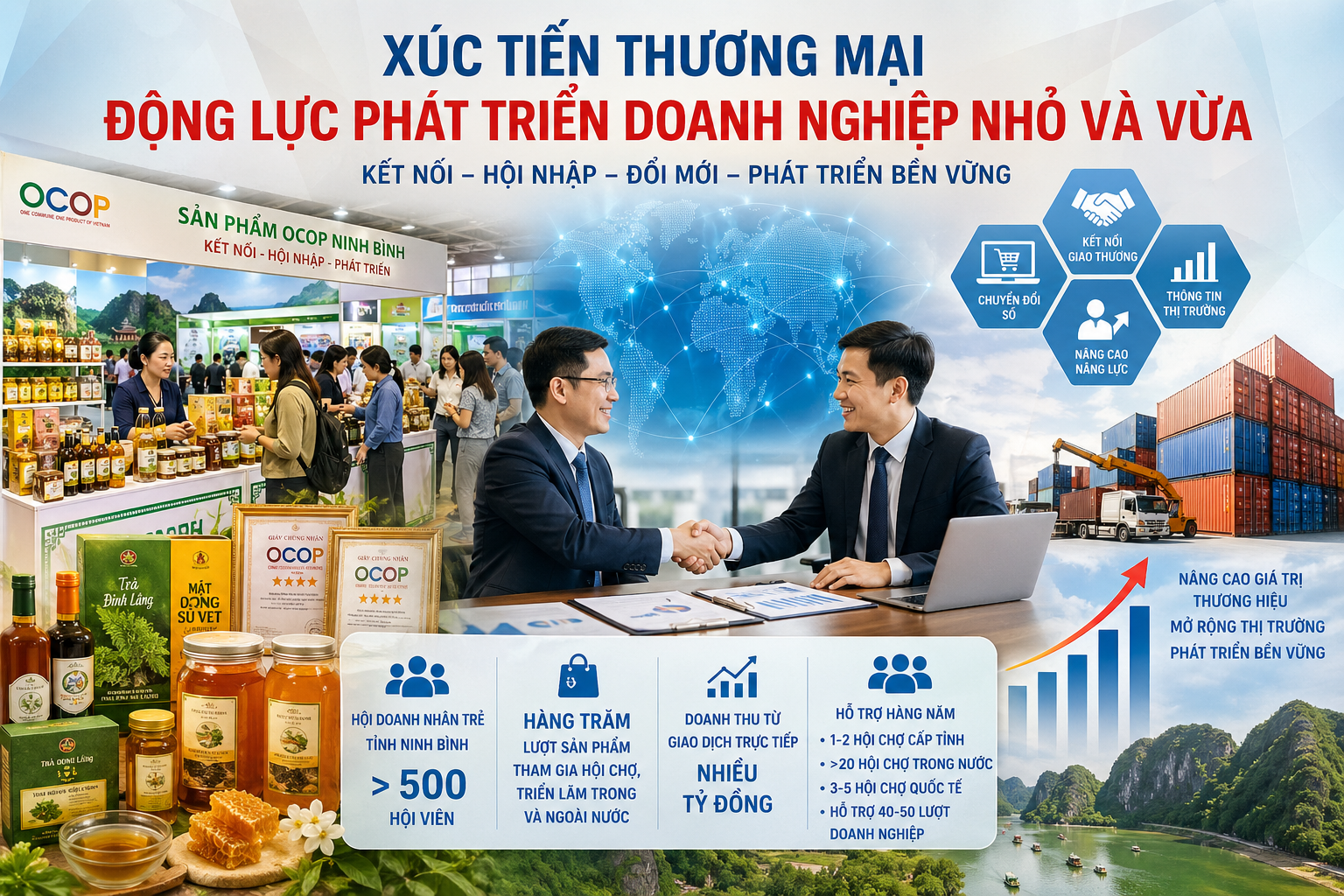 Doanh nghiệp nhỏ và vừa (SME) từ lâu được xem là lực lượng nòng cốt của nền kinh tế, đóng góp quan trọng vào tăng trưởng, tạo việc làm và gia tăng giá trị nội địa. Tuy nhiên, những hạn chế cố hữu về quy mô vốn, nhân lực, kinh nghiệm quản trị và khả năng tiếp cận thị trường khiến khu vực này vẫn gặp nhiều khó khăn trong quá trình phát triển. Thực tế tại Ninh Bình cho thấy, việc đẩy mạnh xúc tiến thương mại (XTTM) đang trở thành “chìa khóa” giúp các doanh nghiệp tháo gỡ điểm nghẽn, từng bước phát triển bền vững.