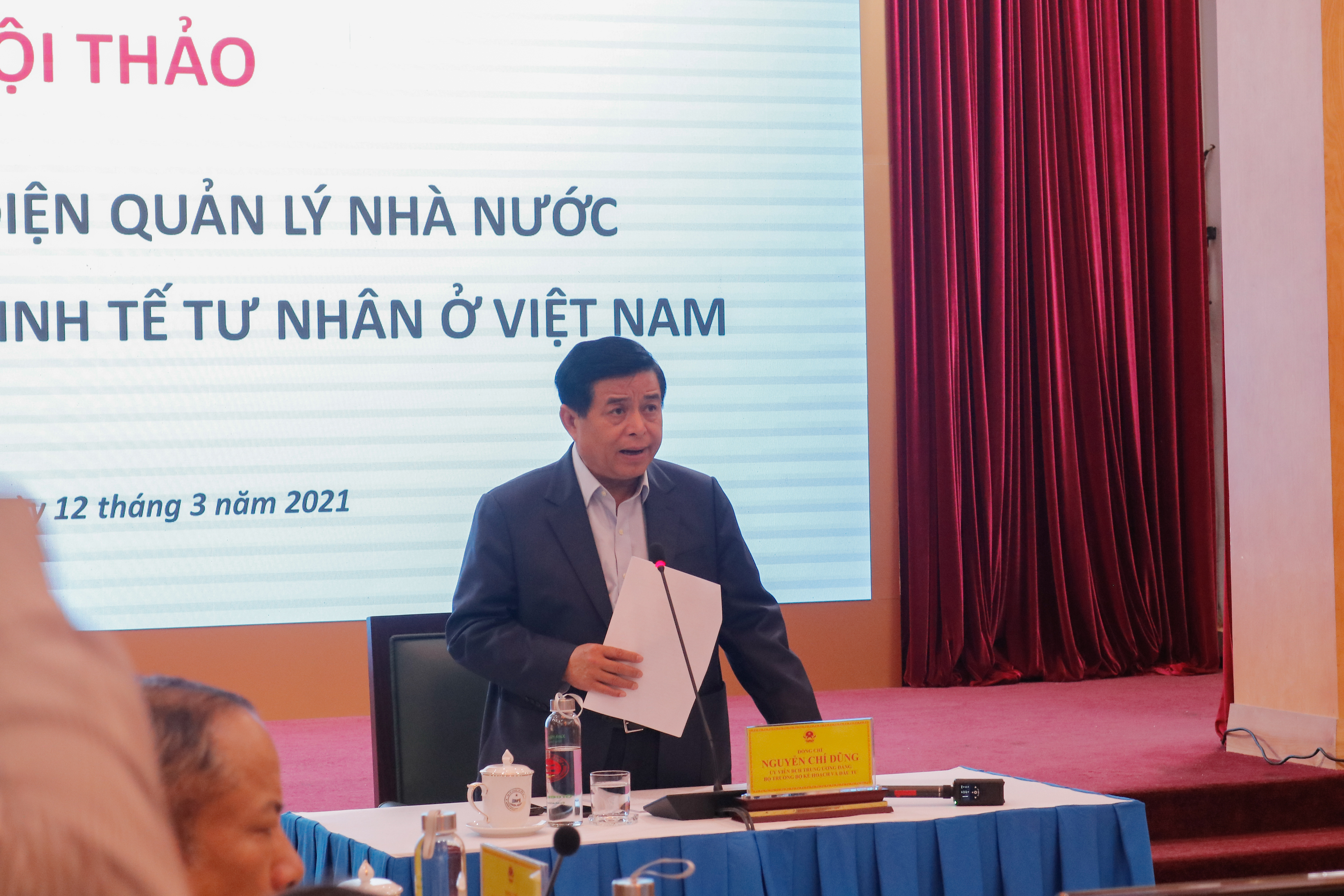 Chiều ngày 12/3, tại Hà Nội, Bộ Kế hoạch và Đầu tư tổ chức Hội thảo lấy ý kiến góp ý hoàn thiện đề án “Đổi mới toàn diện quản lý nhà nước trong phát triển kinh tế tư nhân ở Việt Nam” do Bộ trưởng Bộ Kế hoạch và Đầu tư Nguyễn Chí Dũng chủ trì.
