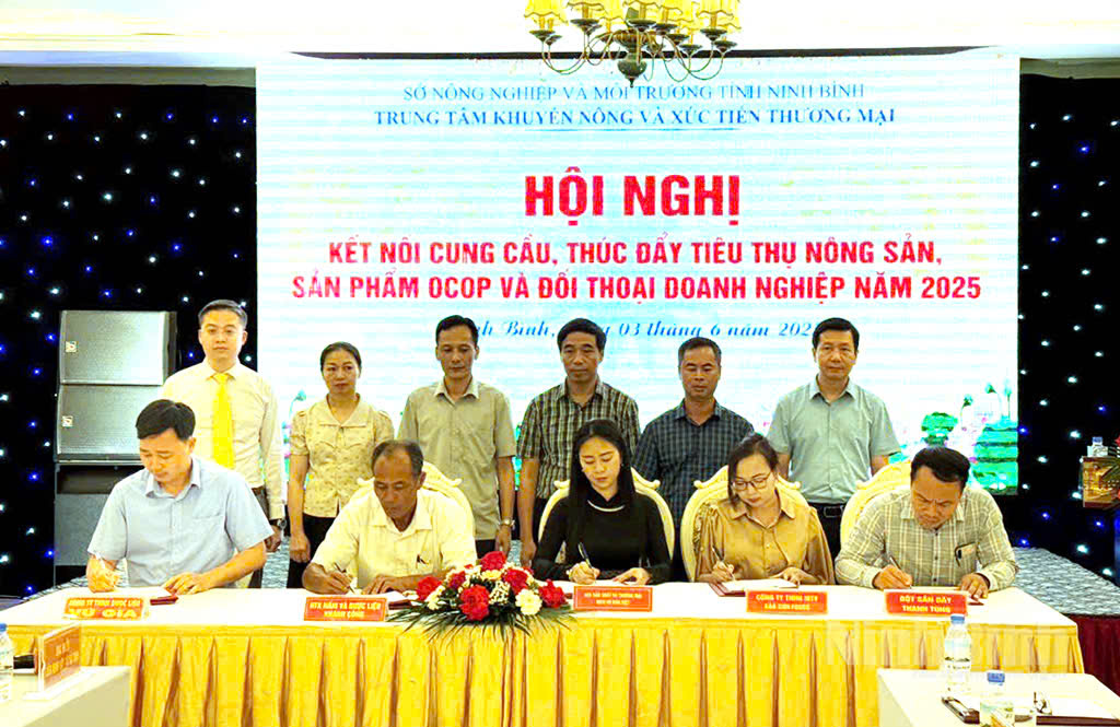 Không chỉ dừng lại ở hoạt động của riêng ngành Công Thương, các sở, ngành khác cũng chủ động xây dựng chương trình kết nối cung cầu phù hợp với đặc thù lĩnh vực. Sở Nông nghiệp và Môi trường thông qua Trung tâm Khuyến nông và XTTM Ninh Bình đã hỗ trợ các doanh nghiệp, cơ sở sản xuất tham gia nhiều hội chợ, triển lãm, tuần lễ nông sản trong và ngoài tỉnh, nổi bật là các hoạt động trong khuôn khổ Tuần lễ sắc vàng Tam Cốc - Tràng An và tại các tỉnh, thành phố lân cận, với trên 100 mặt hàng nông sản, thực phẩm, sản phẩm OCOP được giới thiệu, quảng bá.