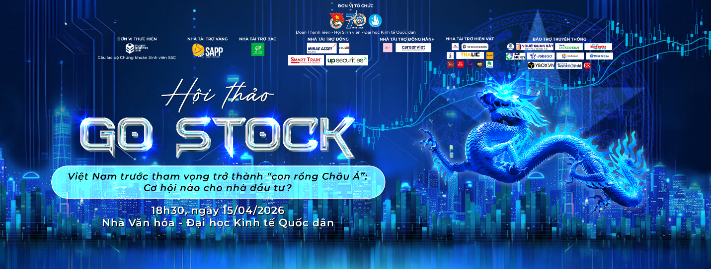 Vào ngày 15/01/2025, Câu lạc bộ Chứng khoán Sinh viên (SSC) - Đại học Kinh tế Quốc dân đã tổ chức Hội thảo Go Stock 2025 với sự góp mặt của 04 diễn giả giàu kinh nghiệm, các khách mời và hơn 15.000 lượt tiếp cận trong suốt quá trình mở đơn.
