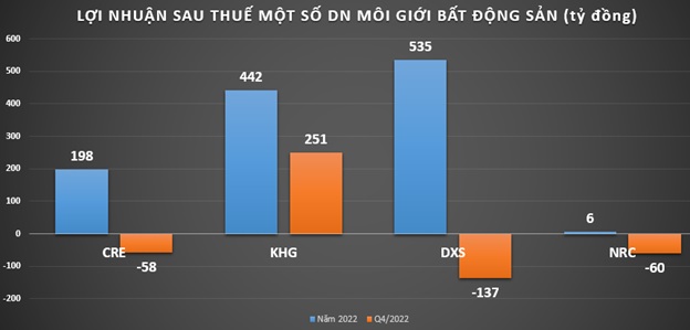 Năm 2022, những doanh nghiệp lớn trong ngành môi giới bất động sản đều ngậm ngùi báo lãi giảm mạnh, thậm chí thua lỗ đậm do thị trường đóng băng, lãi vay ngân hàng tăng cao...