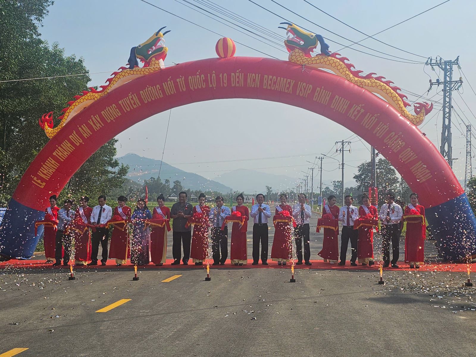 Quang cảnh Lễ khánh thành Tuyến đường nối từ Quốc lộ 19 đến KCN Becamex Vsip Bình Định kết nối với Cảng Quy Nhơn