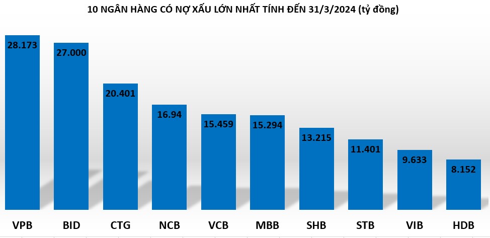 Do ngân hàng Agribank không công bố báo cáo tài chính quý I/2024 nên VPBank hiện là nhà băng có số dư nợ xấu lớn nhất hệ thống.