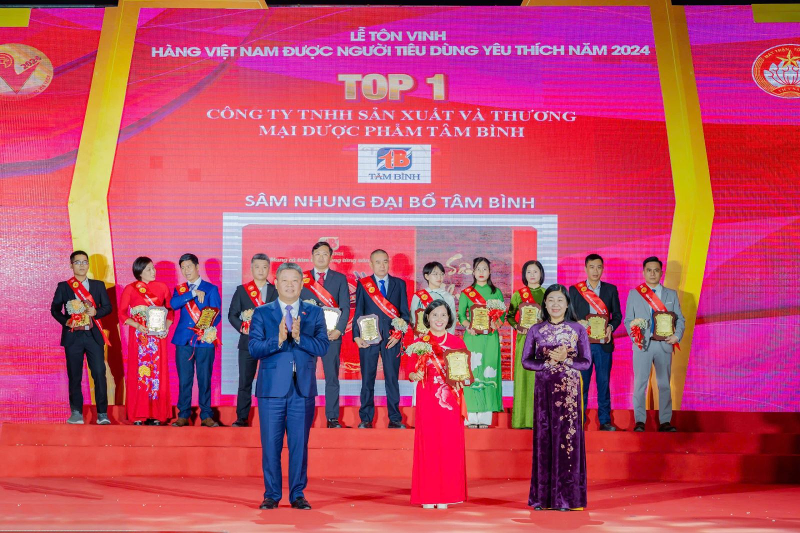 Tại Lễ tôn vinh “Hàng Việt Nam được người tiêu dùng yêu thích” năm 2024, Sâm Nhung Đại Bổ Tâm Bình đã vinh dự nằm trong Top 1. Đây là minh chứng cho niềm tin của người dùng với Sâm Nhung Đại Bổ Tâm Bình nói riêng và thương hiệu Dược phẩm Tâm Bình nói chung.