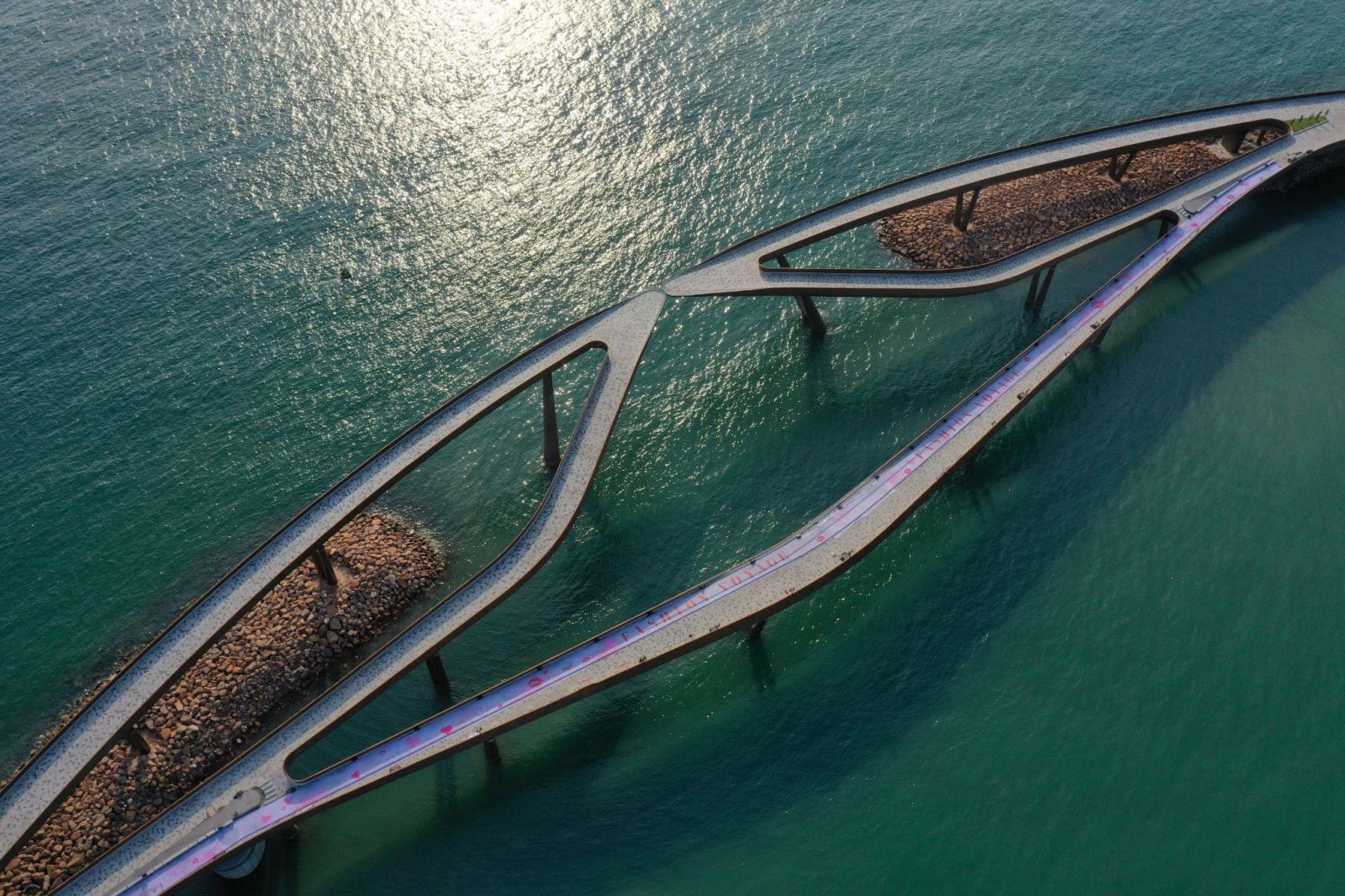 Đặc biệt đội ngũ kiến trúc sư quốc tế và Sun Group đã dày công nghiên cứu đường di chuyển của mặt trời vào các thời điểm trong năm qua mô hình 3D giả lập, để ngày 1/1 hàng năm, mặt trời lúc hoàng hôn sẽ rơi vào chính giữa hai mũi cầu, trước khi từ từ lặn xuống đáy biển.