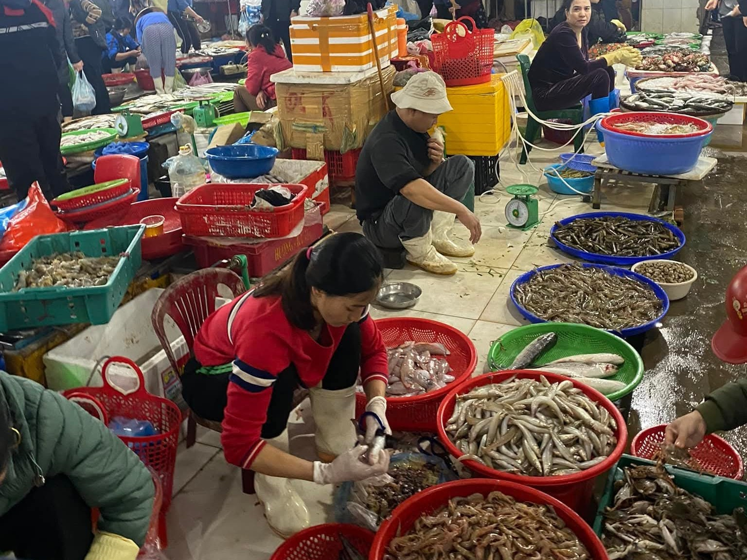 Khảo sát thị trường cho thấy giá nhiều mặt hàng thiết yếu giữ mức ổn định so với trước tết. Cụ thể, thịt gà dao động từ 150.000 - 190.000 đồng/kg; thịt lợn từ 160.000 -180.000 đồng/kg; thịt bò từ 250.000 - 300.000 đồng/kg. Nhóm thủy hải sản duy trì mức giá tương đối ổn định như tôm từ 220.000 - 250.000 đồng/kg, mực khoảng 300.000 đồng/kg, cá trắm giòn từ 150.000 – 180.000 đồng/kg tùy kích cỡ. Các sản phẩm giò, chả phổ biến ở mức khoảng 180.000 đồng/kg.