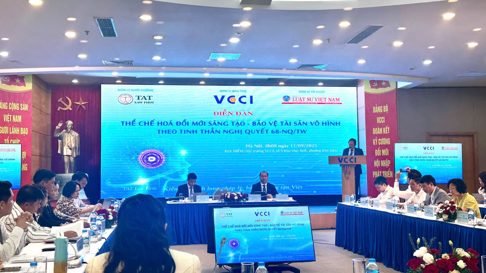 Vừa qua, Tạp chí Luật sư Việt Nam phối hợp cùng Liên đoàn Thương mại và Công nghiệp Việt Nam (VCCI), Công ty Luật TNHH Trương Anh Tú (TAT Law Firm) tổ chức Diễn đàn “Thể chế hoá đổi mới sáng tạo – Bảo vệ tài sản vô hình theo tinh thần Nghị quyết 68-NQ/TW”.