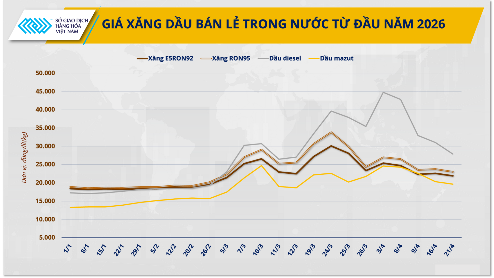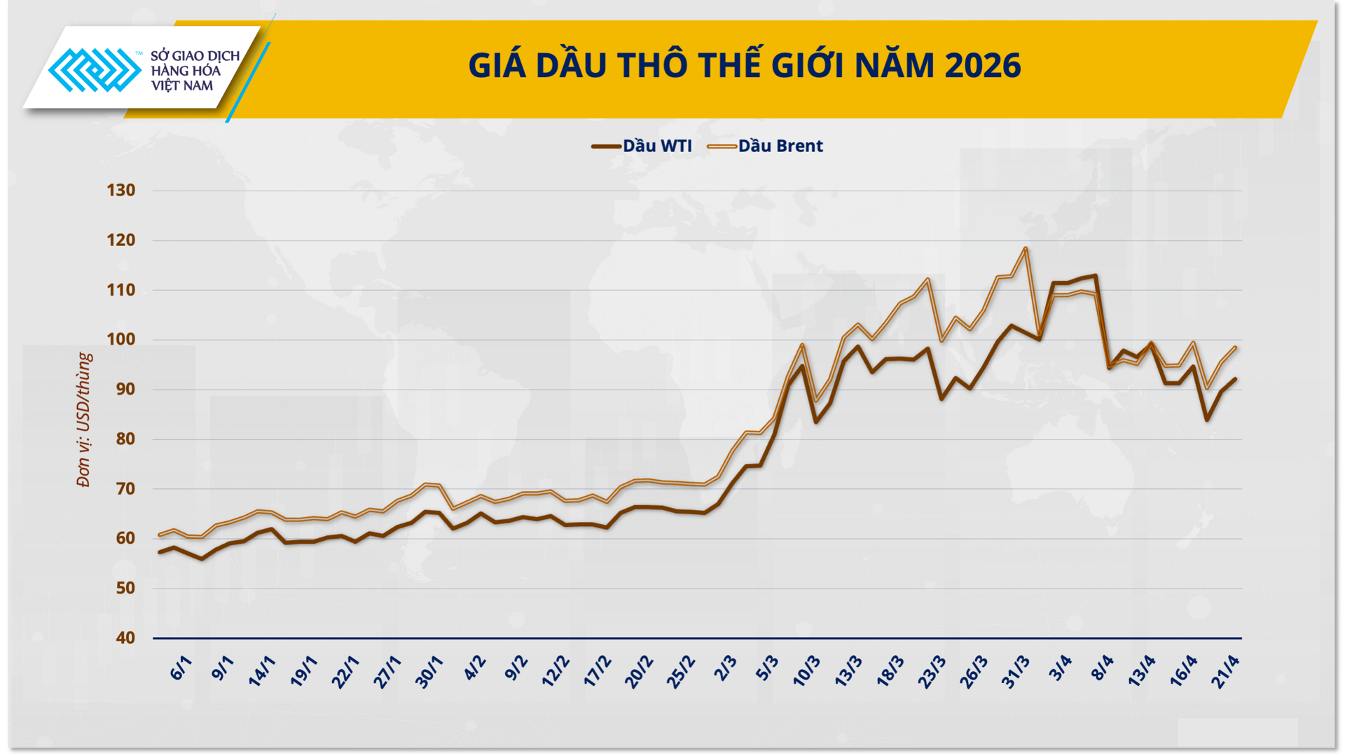 Phiên giao dịch ngày 21/4 cho thấy thị trường hàng hóa nguyên liệu thế giới đang bước vào giai đoạn nhạy cảm với các yếu tố vĩ mô và địa chính trị.