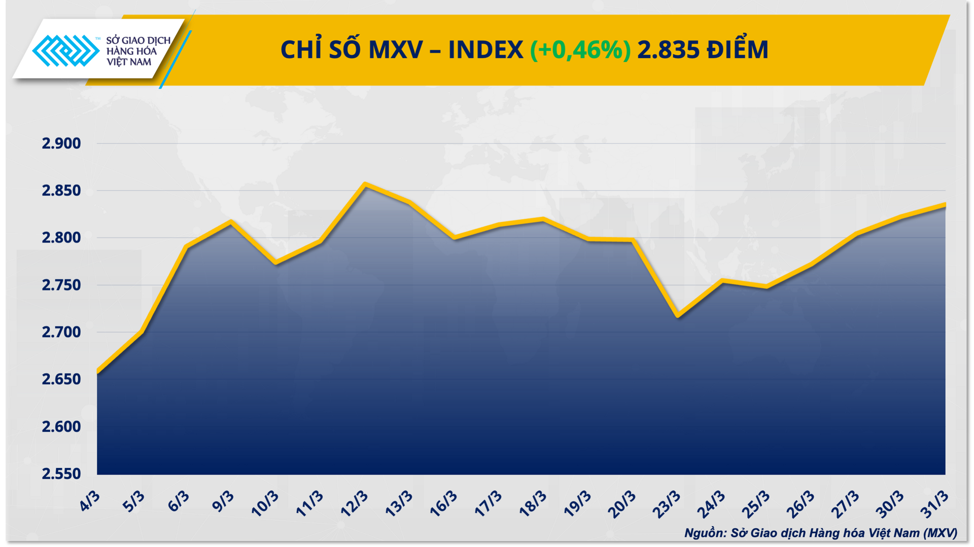 Theo Sở Giao dịch Hàng hóa Việt Nam (MXV), phiên giao dịch hôm qua (31/3) chứng kiến đà tăng mạnh của nhóm kim loại quý, trong đó bạc là mặt hàng nổi bật nhất khi kéo dài chuỗi tăng sang phiên thứ ba liên tiếp. Đà tăng này diễn ra trong bối cảnh lo ngại lạm phát ngắn hạn hạ nhiệt nhờ căng thẳng Trung Đông có dấu hiệu dịu lại, đồng USD suy yếu và triển vọng tiêu thụ công nghiệp cải thiện.