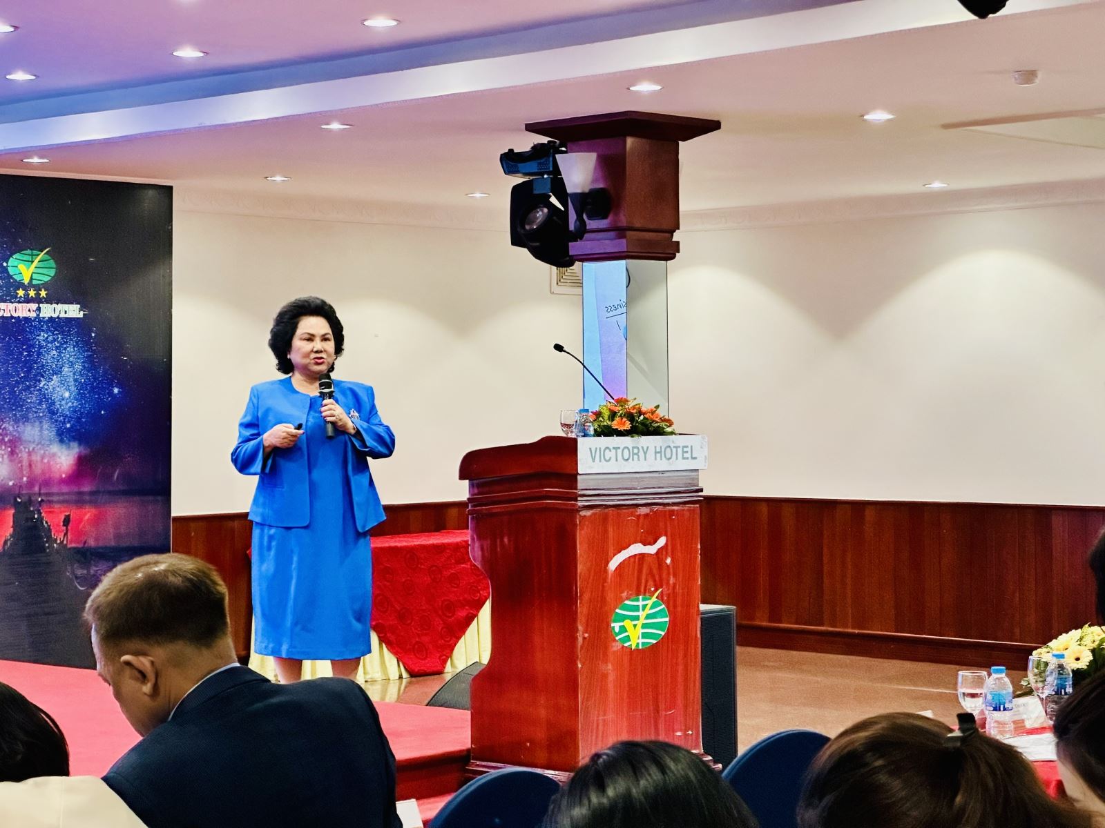 Bà Lý Kim Chi, Chủ tịch Hội Lương thực Thực phẩm TP. Hồ Chí Minh (FFA) phát biểu