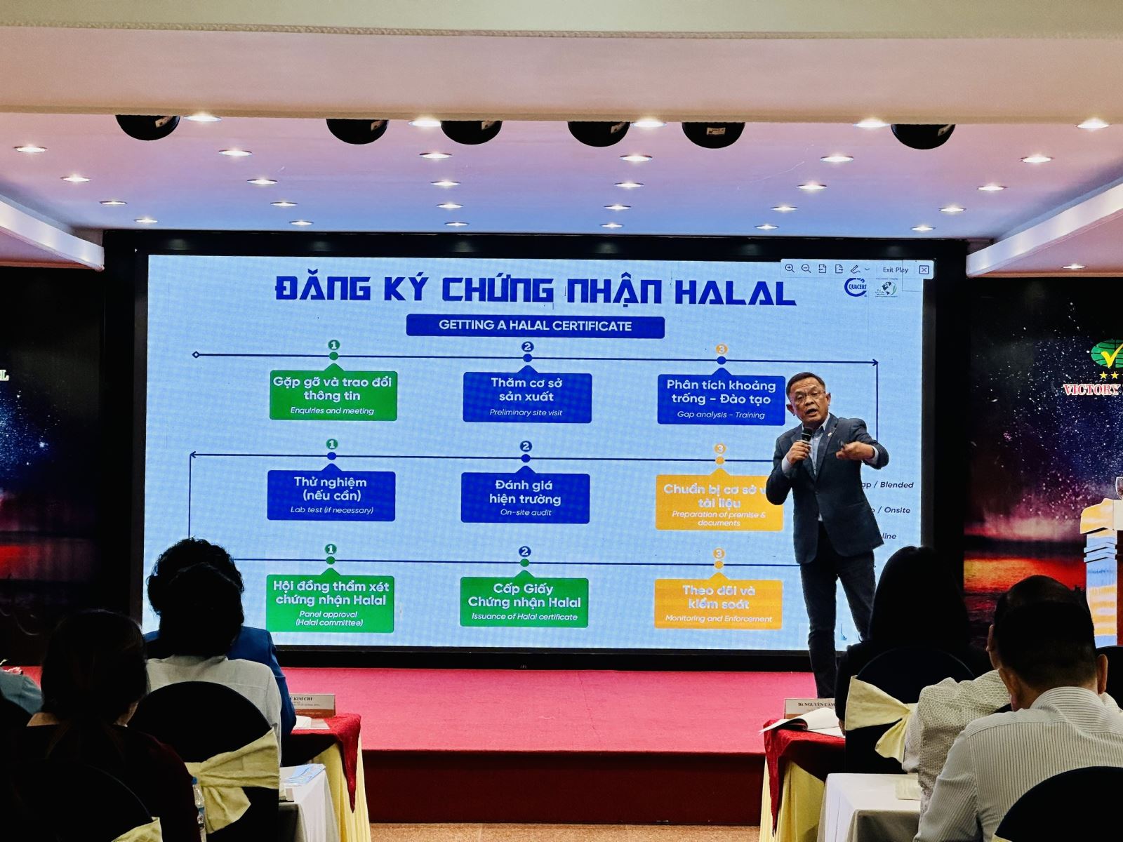 Ông Ramlan Bin Osman, Giám đốc HalCert hướng dẫn doanh nghiệp cách đăng ký chứng nhận Halal tại hội thảo