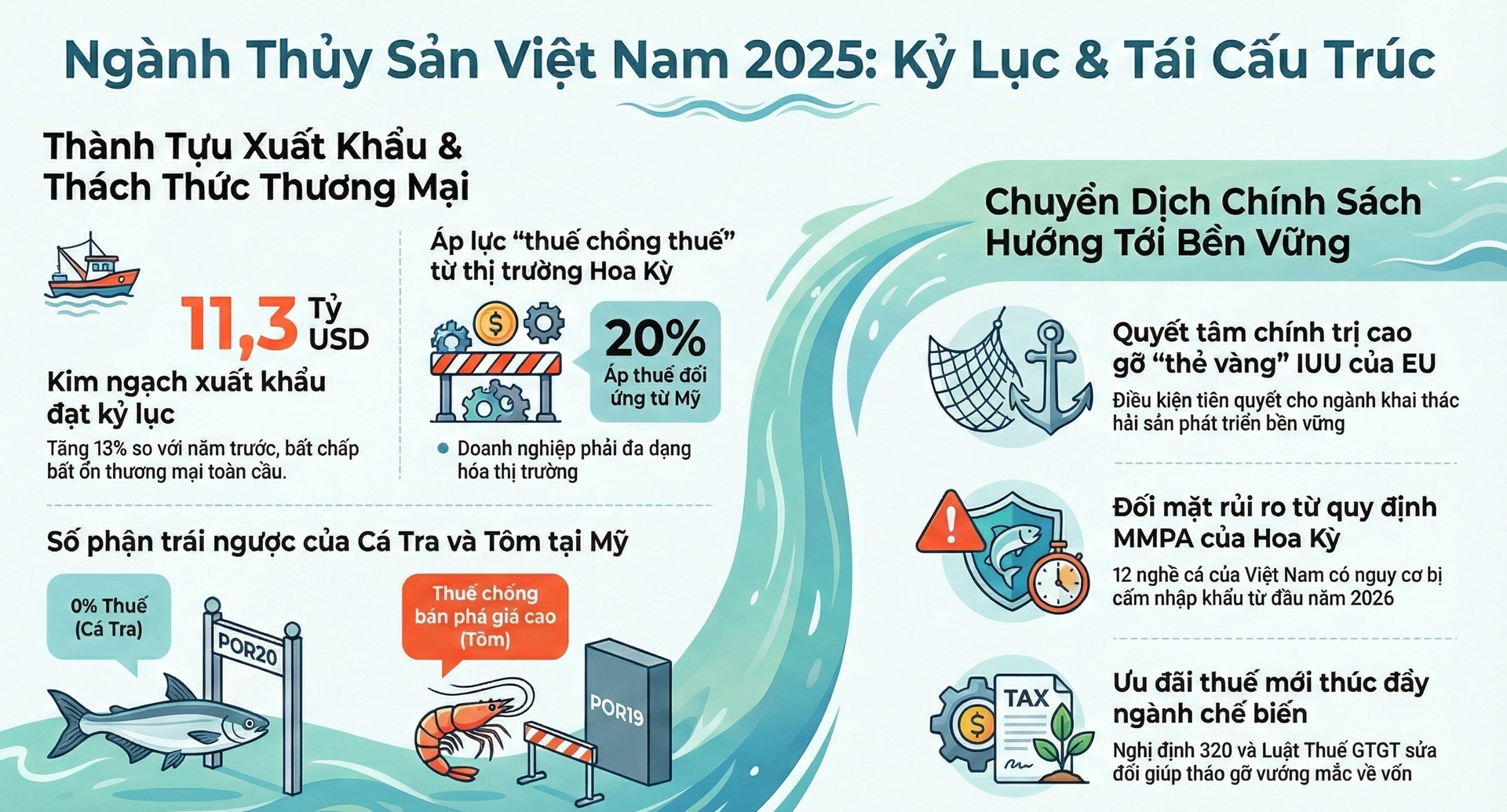 Năm 2025 khép lại với nhiều dấu ấn đặc biệt đối với ngành thủy sản Việt Nam, một trong những trụ cột xuất khẩu quan trọng của nền kinh tế.