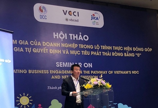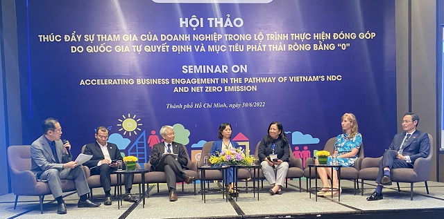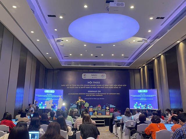 Ngày 30/6/2022 tại TP. HCM, Cục Biến đổi Khí Hậu, Bộ Tài nguyên và Môi trường, Liên đoàn Thương mại và Công nghiệp Việt Nam (VCCI) phối hợp Cơ quan Hợp tác Quốc tế Nhật Bản (JICA) tổ chức tổ chức hội thảo “Thúc đẩy sự tham gia của Doanh nghiệp trong lộ trình thực hiện Đóng góp do quốc gia tự quyết định và mục tiêu phát thải ròng bằn