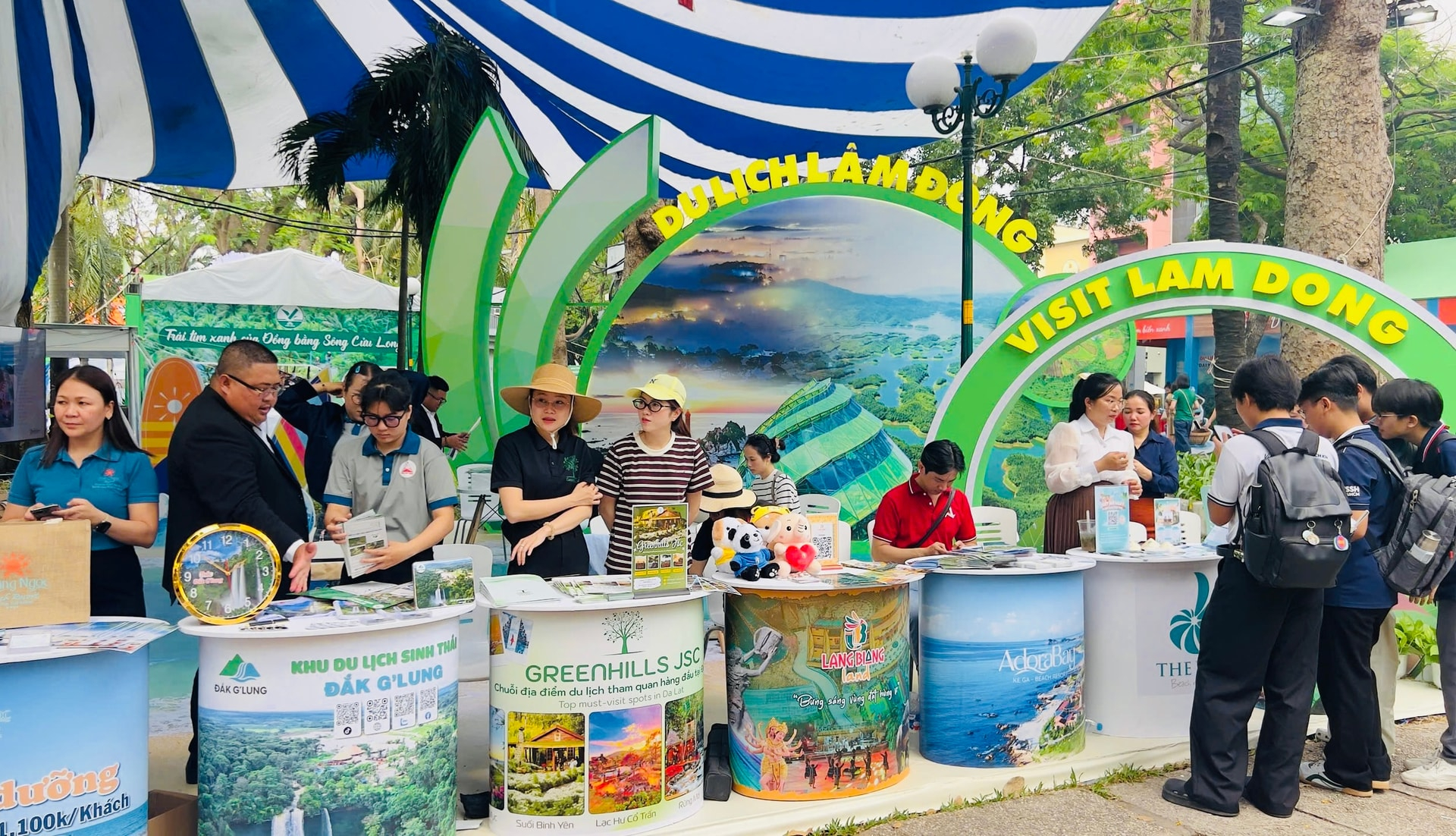 Không gian được sắp xếp thành hai khu vực chính. Ở khu doanh nghiệp, các đơn vị giới thiệu tour mới kèm theo nhiều chương trình ưu đãi cho mùa hè. Trong khi đó, khu địa phương mang đến những lát cắt văn hóa đặc trưng của từng tỉnh, thành, thông qua cách bài trí không gian, sản phẩm thủ công và quà tặng.