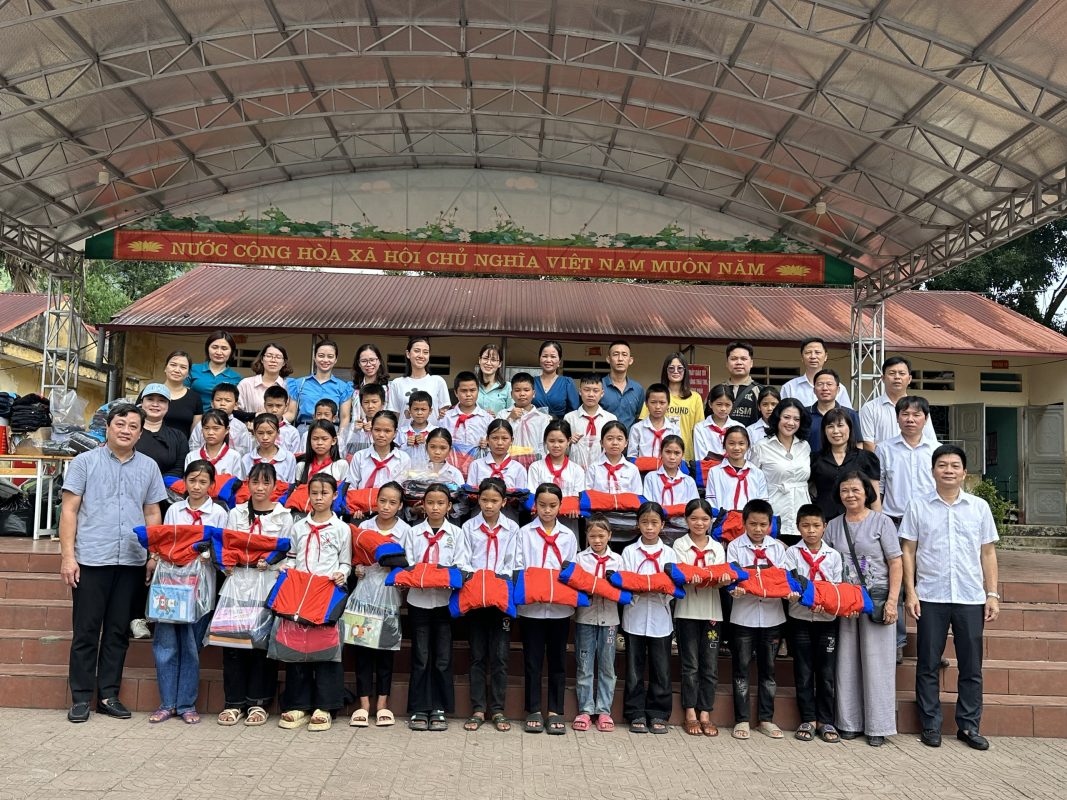 Thầy Vũ Tiến Dũng – TS. Hiệu trưởng nhà trường làm trưởng đoàn, cùng 12 thầy cô giảng viên thực hiện Chương trình trao quà cho các em học sinh tại 2 điểm: Trường Tiểu học & THCS xã Quảng Ngần và Trường Tiểu học B Bạch Ngọc.