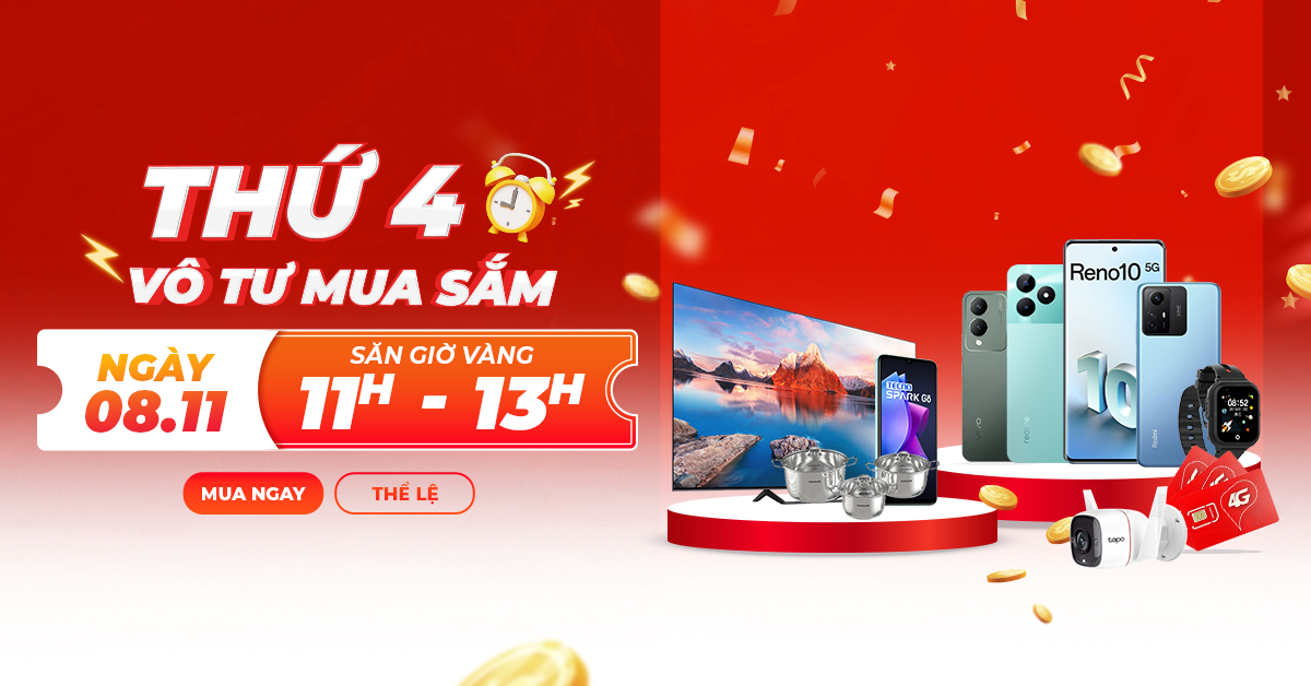 Một thứ 4 nữa lại đến, đồng hành cùng khách hàng qua rất nhiều “Thứ 4, vô tư mua sắm”, Viettel Store tiếp tục tung ưu đãi giờ vàng đồng loạt giảm giá sâu rất nhiều suất bán đặc biệt các sản phẩm smartphone, đồ gia dụng, phụ kiện, dịch vụ...