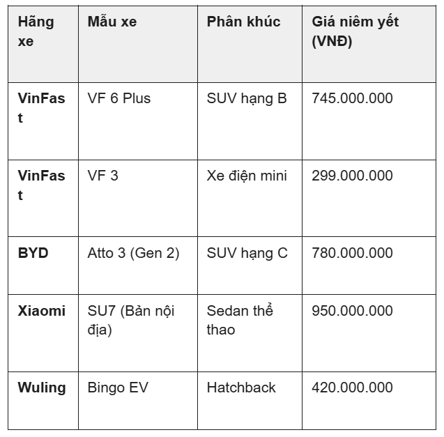 Đây là hạng mục xe điện thể hiện ưu thế tuyệt đối.
