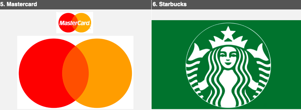 Mastercard là một logo đơn giản với hai vòng tròn chồng lên nhau. Một vòng tròn màu đỏ và một vòng tròn màu vàng. Chúng kết hợp với nhau tạo ra một màu cam tươi sáng. Thương hiệu sử dụng biểu tượng trực quan thay vì hiển thị tên công ty bằng chữ, phản ánh tầm nhìn về một xã hội kỹ thuật số sau thẻ tín dụng thanh toán kỹ thuật số.