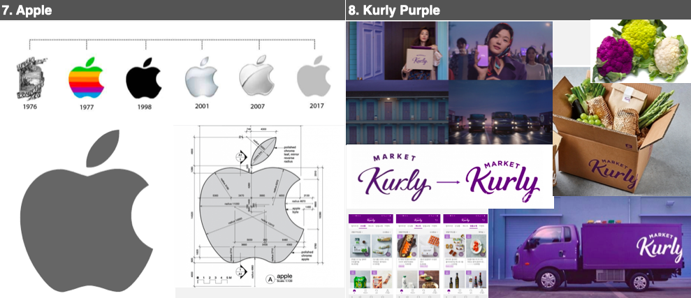 Màu thương hiệu của Curly - một công ty giao hàng thực phẩm cao cấp là màu tím - màu rau súp lơ. Market Kurly thể hiện hình ảnh là một trang thương mại điện tử cao cấp, sang trọng và tao nhã. Từ màu sắc của túi nước đá đến quần áo, khăn quàng cổ của người mẫu quảng cáo, cánh cửa và thậm chí cả màu bầu trời đều sử dụng màu tím của thương hiệu. Thương hiệu muốn truyền tải thông điệp rằng "màu này là màu của chúng tôi".