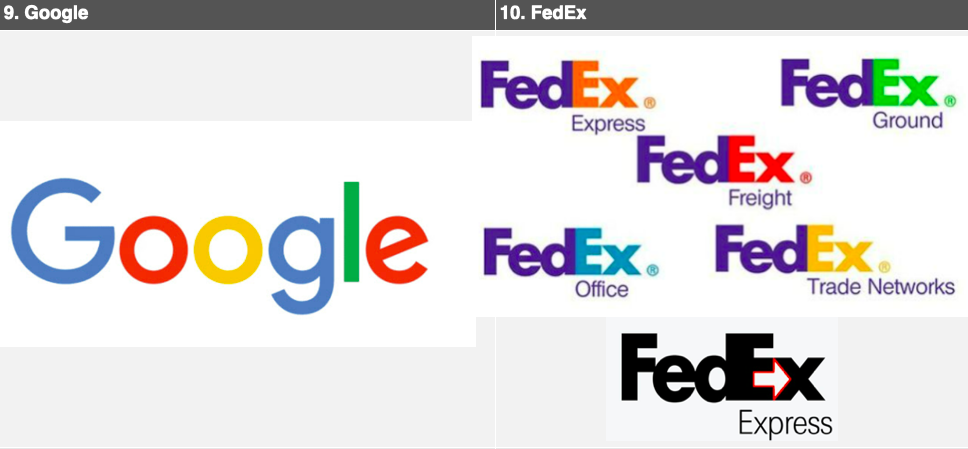 Đây là tên viết tắt của 'Federal Express', một công ty chuyển phát hàng không. FedEx sử dụng 2 màu hoàn toàn khác nhau cho các dịch vụ khác nhau. Màu cam được sử dụng trong vận chuyển hàng không vì nó là màu đại diện cho năng lượng, sự tự tin và độ tin cậy vận chuyển đến vị trí giao hàng nhanh hơn và an toàn hơn. Màu xanh lá cây được sử dụng cho vận chuyển mặt đất vì nó thể hiện sự đáng tin cậy và bình yên. Luôn thay đổi màu chữ 'EX' của logo để tạo sự nhất quán cho thương hiệu.